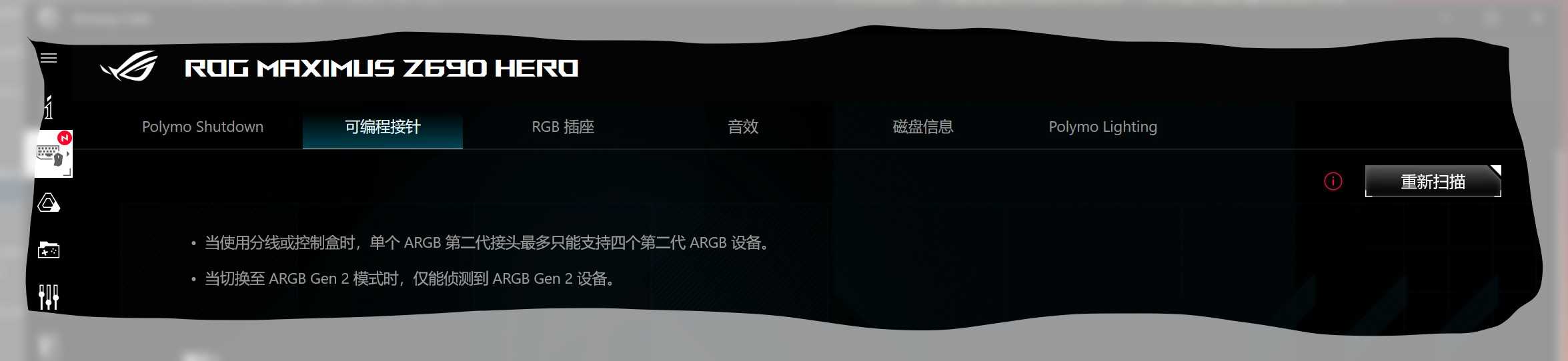 若 icue 无法显示内存, 需要到 bios 中 (AI Tweaker -> Tweakers Paradise -> SPD Write Disable = False) 开启功能
