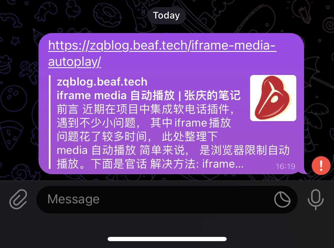 The Open Graph protocol 属于 SEO 中的一部分, 在支持 og 协议的社交平台中把链接转为卡片渲染,能极大增加网页链接被点击率。 本文通过升级当前文档系统集成 og 标签,从而更进一步了解 og 协议